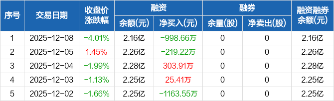 惠博普:融资净偿还998.66万元,融资余额2.16亿元(12-08)