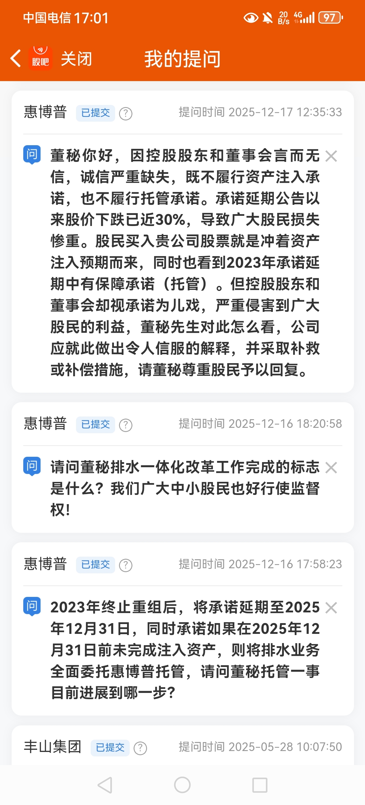 这是前几天提的三个问题,到目前为止董秘尚未回复