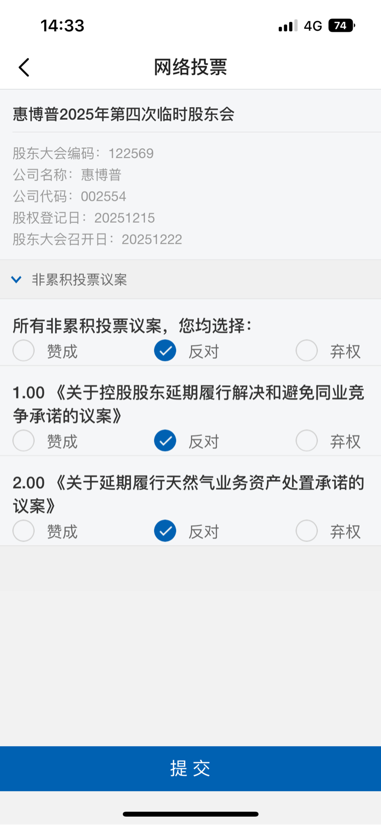 $惠博普(SZ002554)$ 反对无效也要反对!