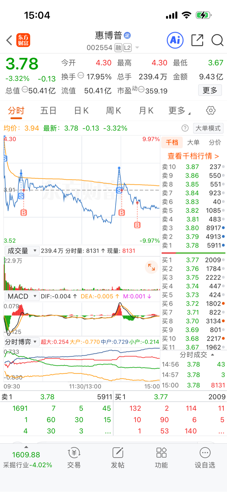 别管它涨与跌,你要做的就是降低成本,向主力学习下午要是3.68买进去就完美了