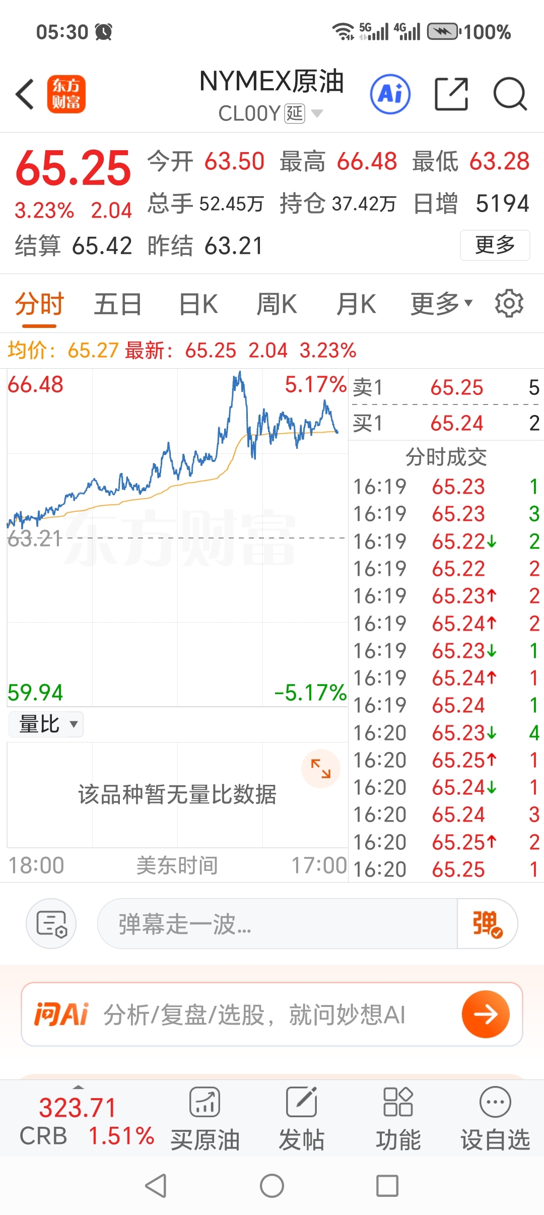 $惠博普(SZ002554)$ 昨夜国际黄金曾惊魂一跳,但都没有阻止原油大涨,当然黄金最终依然还是上涨,而原油大涨3个多点,且看