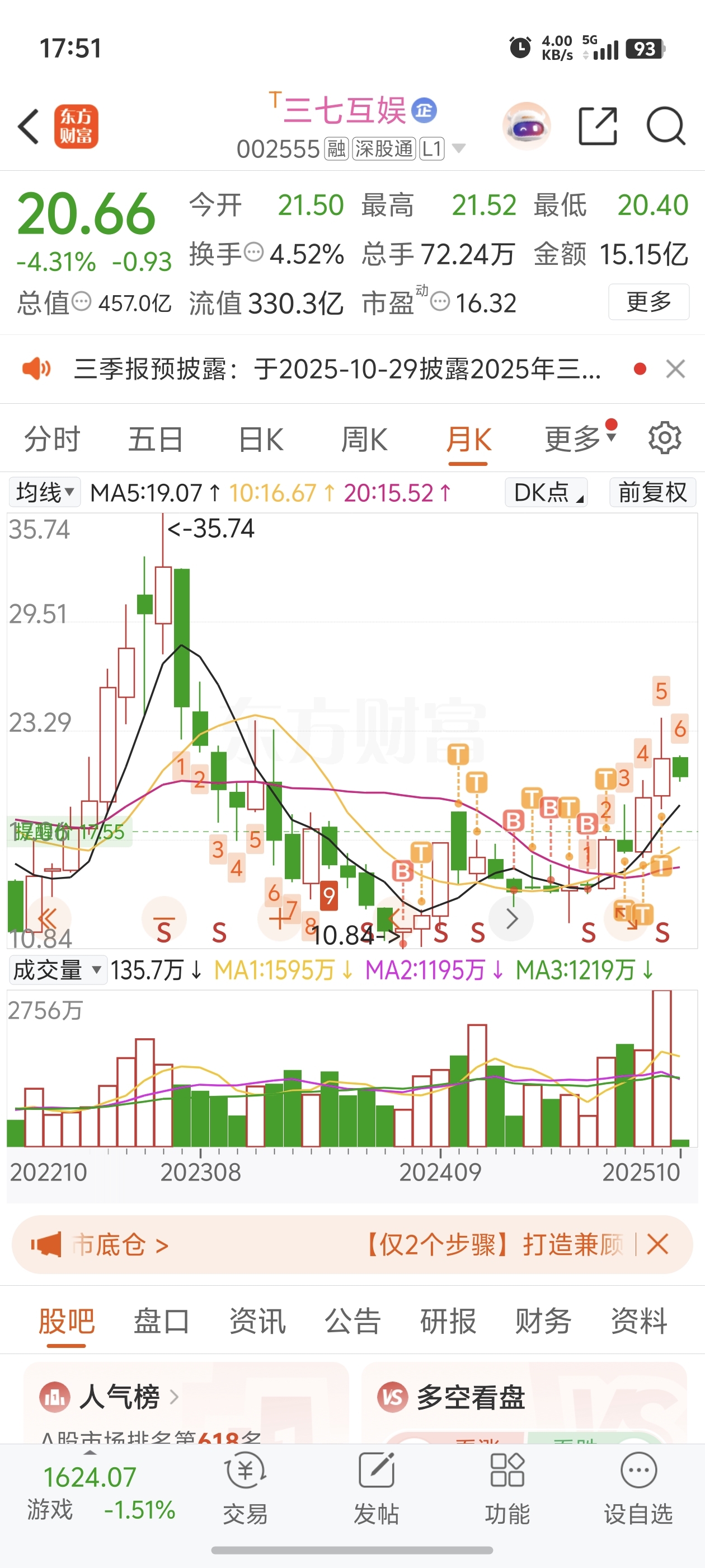 $三七互娱(SZ002555)$ 已经调整两波了,从35块跌下来,解套了一半人,这一次调整完应该会突破三十五了
