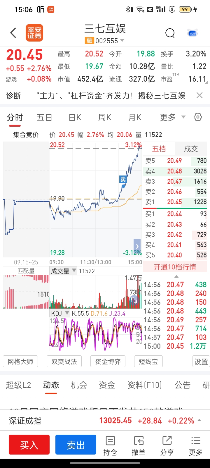 $三七互娱(SZ002555)$ 忍了一天,还是卖在了半山腰