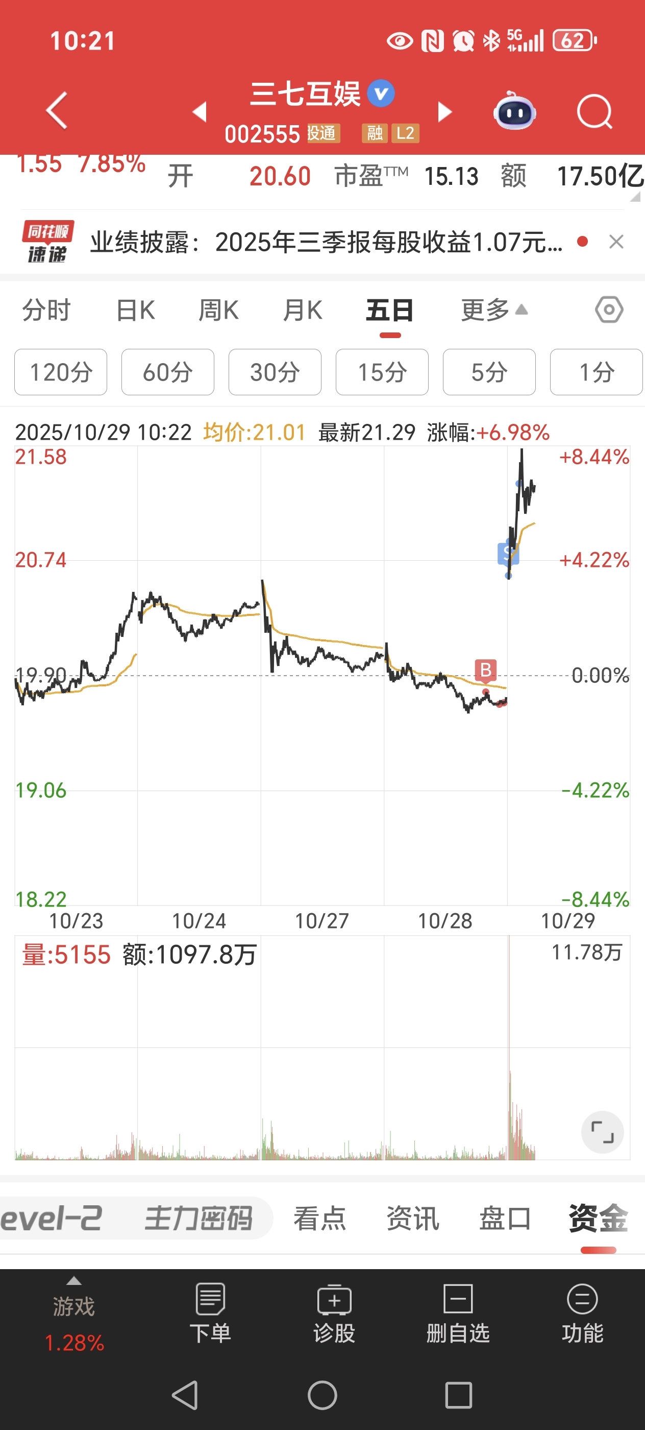 $三七互娱(SZ002555)$ 昨天尾盘买,今天均价不到7个点减了一半,剩下的再观察下