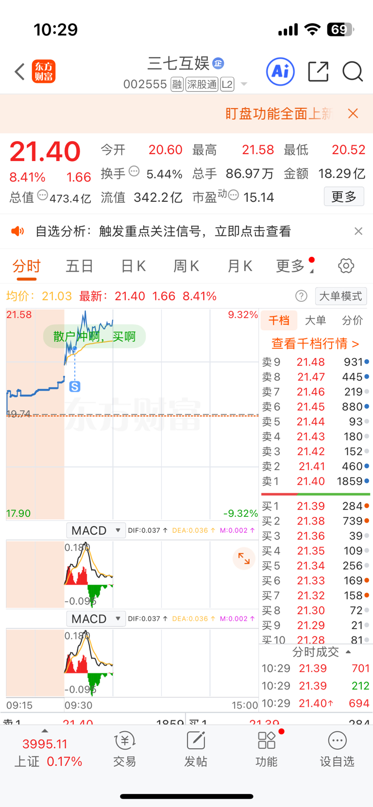 $三七互娱(SZ002555)$ 胆小了一下,清了一半