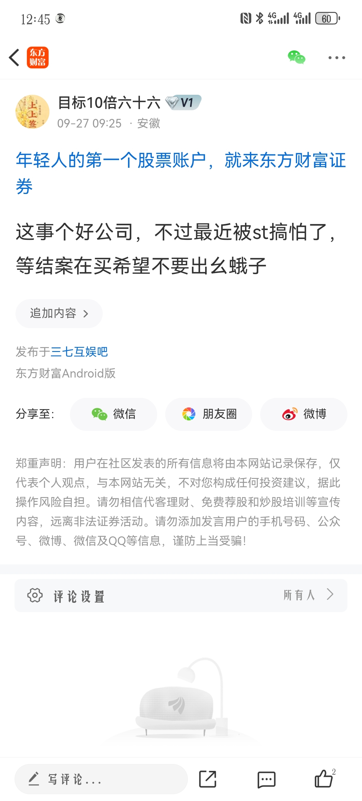 温馨提示: 1.根据《证券法》规定,禁止编造、传播虚假信息或者误导性信息,扰乱证券市场;2.用户在本社区发表的所有资料、言论等仅代表个人观点,与本网站立场无关,不对您构成任何投资建议。用户应基于自己的独立判断,自行决定证券投资并承担相应风险。《东方财富社区管理规定》