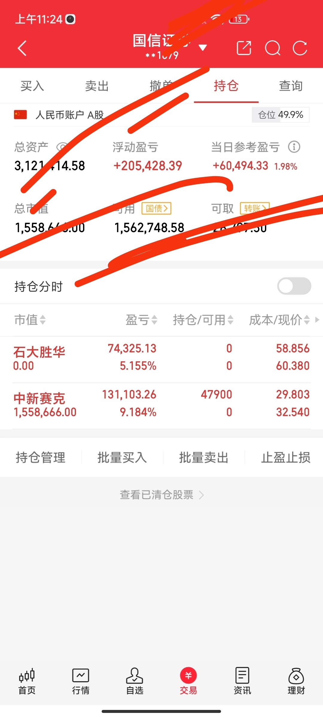 大家好,更新一下今日。将石大胜华止盈出局。新进了中新赛克,今天发展比较不错,继续