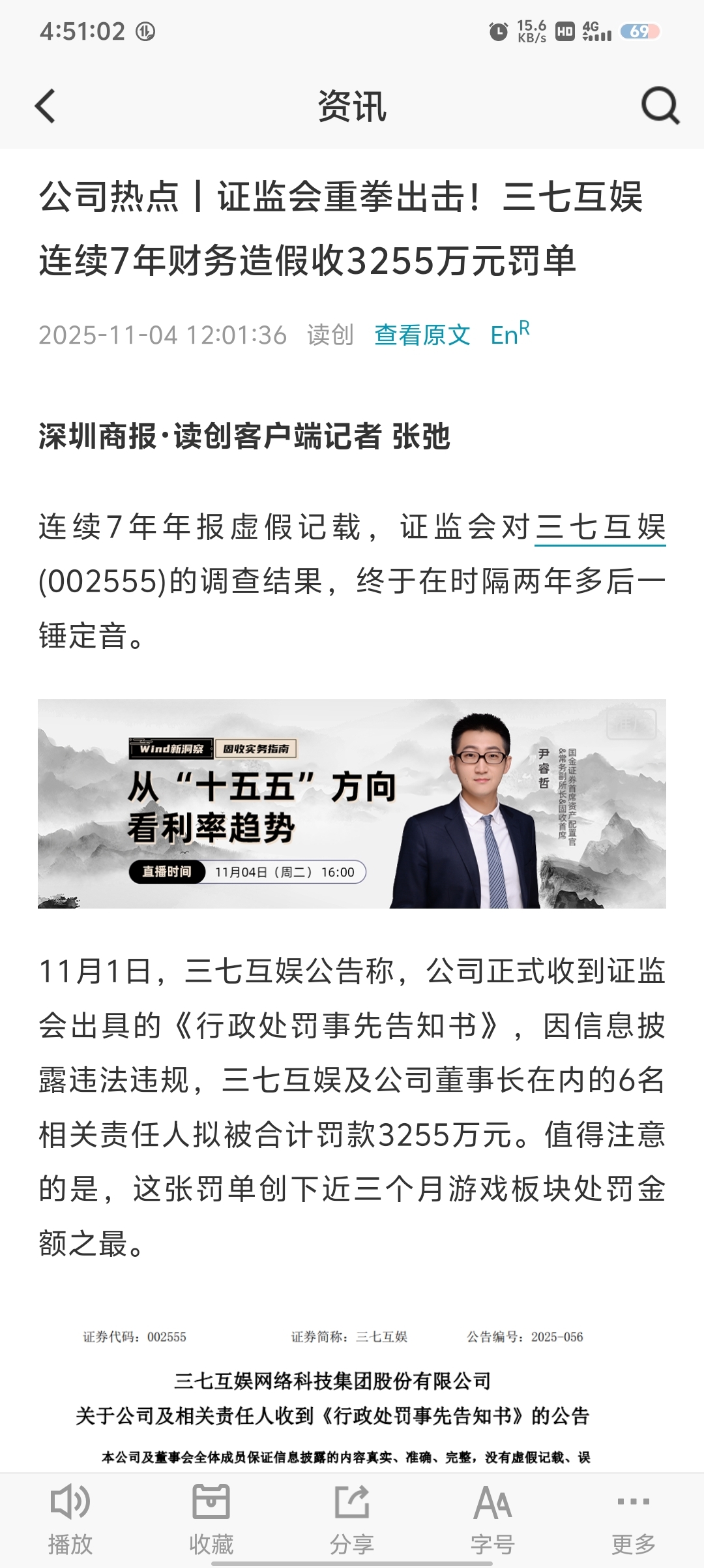 已经举报到证监会和三七互娱公司,张驰等着被处理吧!