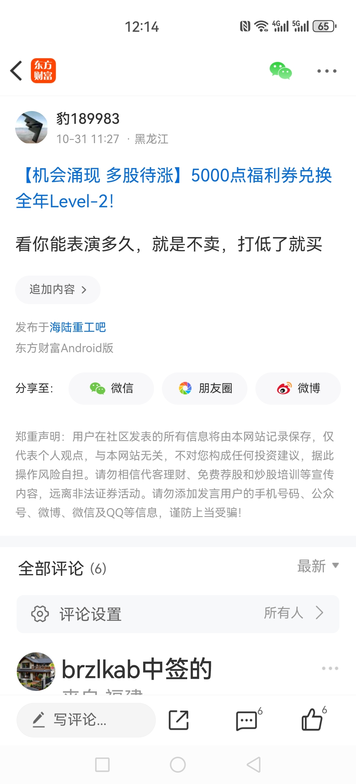 温馨提示: 1.根据《证券法》规定,禁止编造、传播虚假信息或者误导性信息,扰乱证券市场;2.用户在本社区发表的所有资料、言论等仅代表个人观点,与本网站立场无关,不对您构成任何投资建议。用户应基于自己的独立判断,自行决定证券投资并承担相应风险。《东方财富社区管理规定》