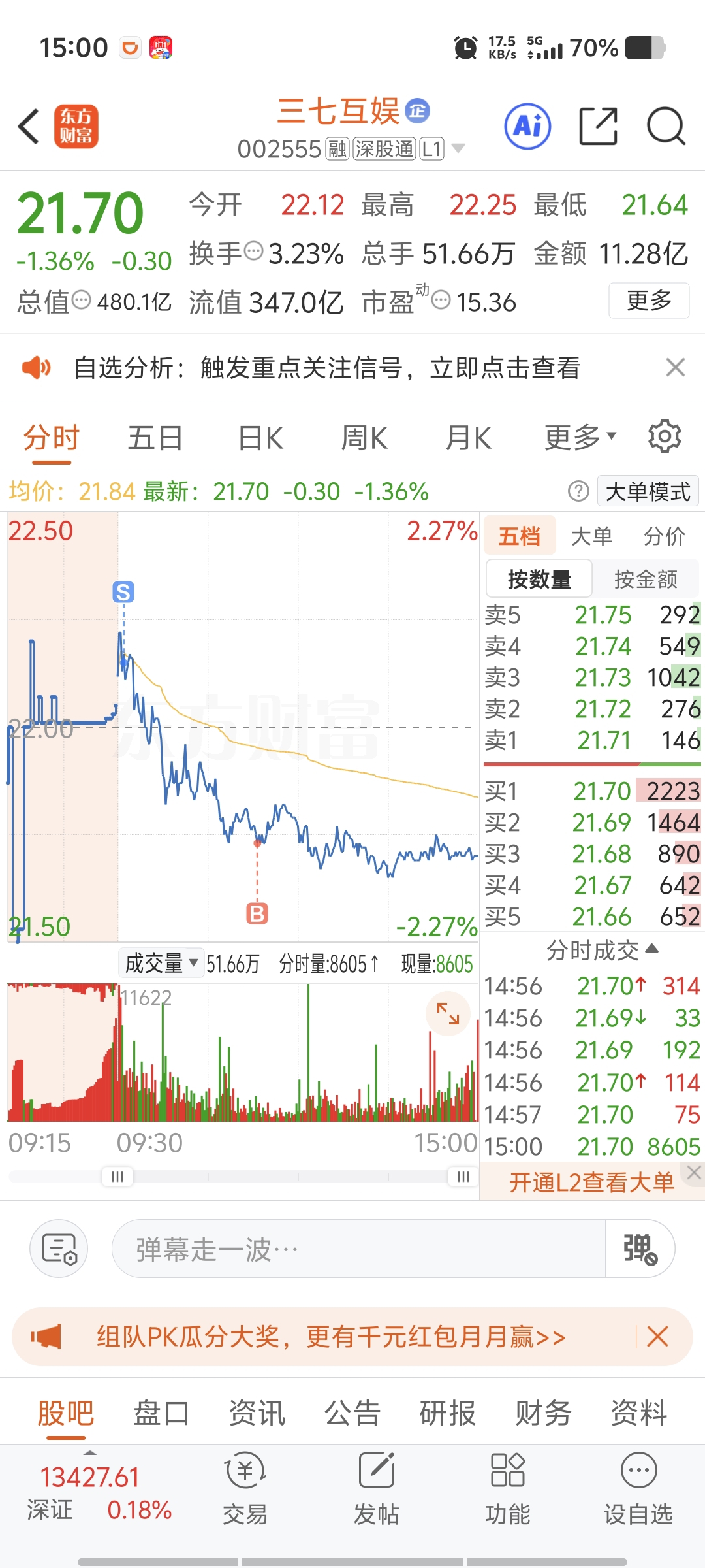$三七互娱(SZ002555)$ 还好做了个t,没亏着,还赚了点。#复盘记录#