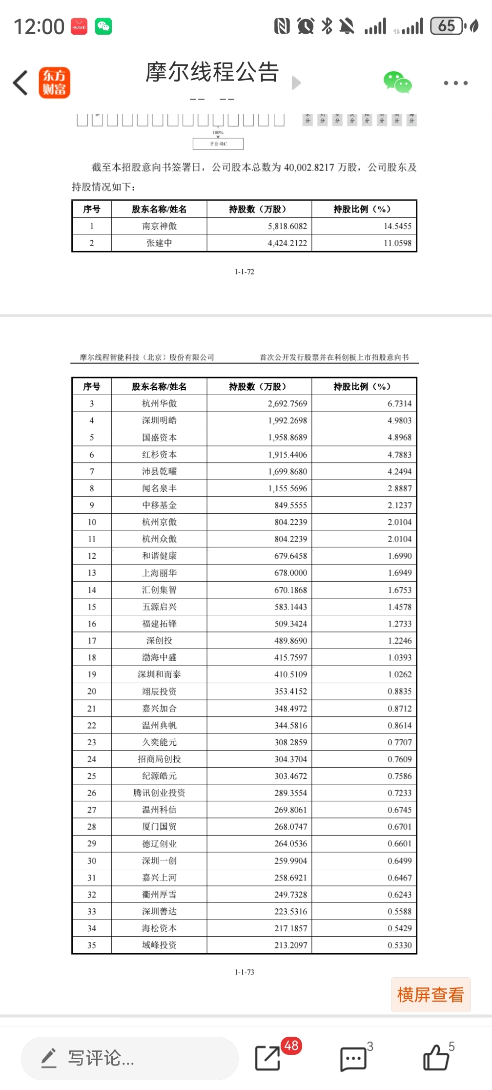 不用当杠精,摩尔线程都发公告了,所有股东都在这图里了,请问,三七在哪???