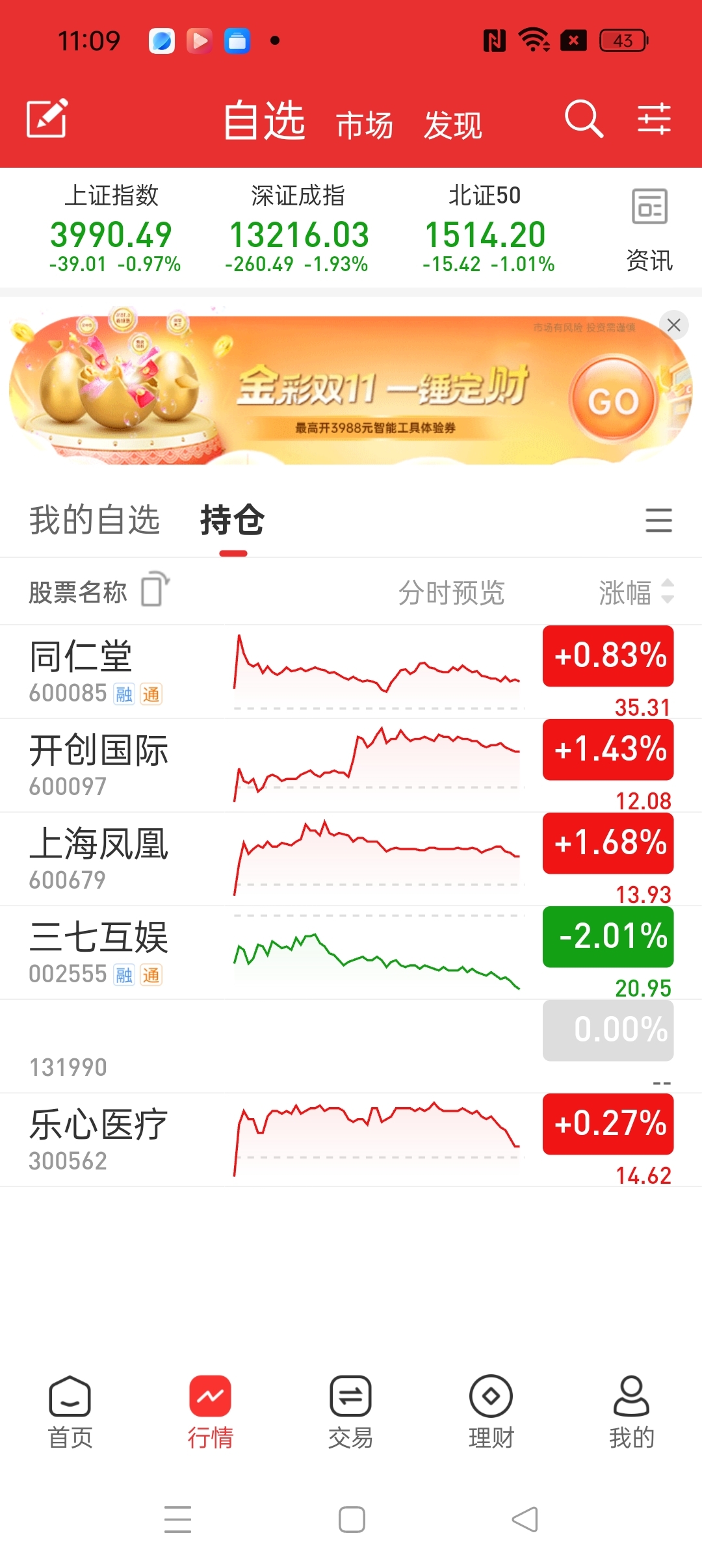 节止上个交易日,今年共清仓了四十二支个股,其中有两支个股亏损状态清仓,四十支盈利状态清仓。2025年制定的年计划盈利目标为30%,现己浮盈59%。目前持仓有三七互娱、同仁堂、乐新医疗、上海凤凰、开创国际五支个股,为跨年度持仓!