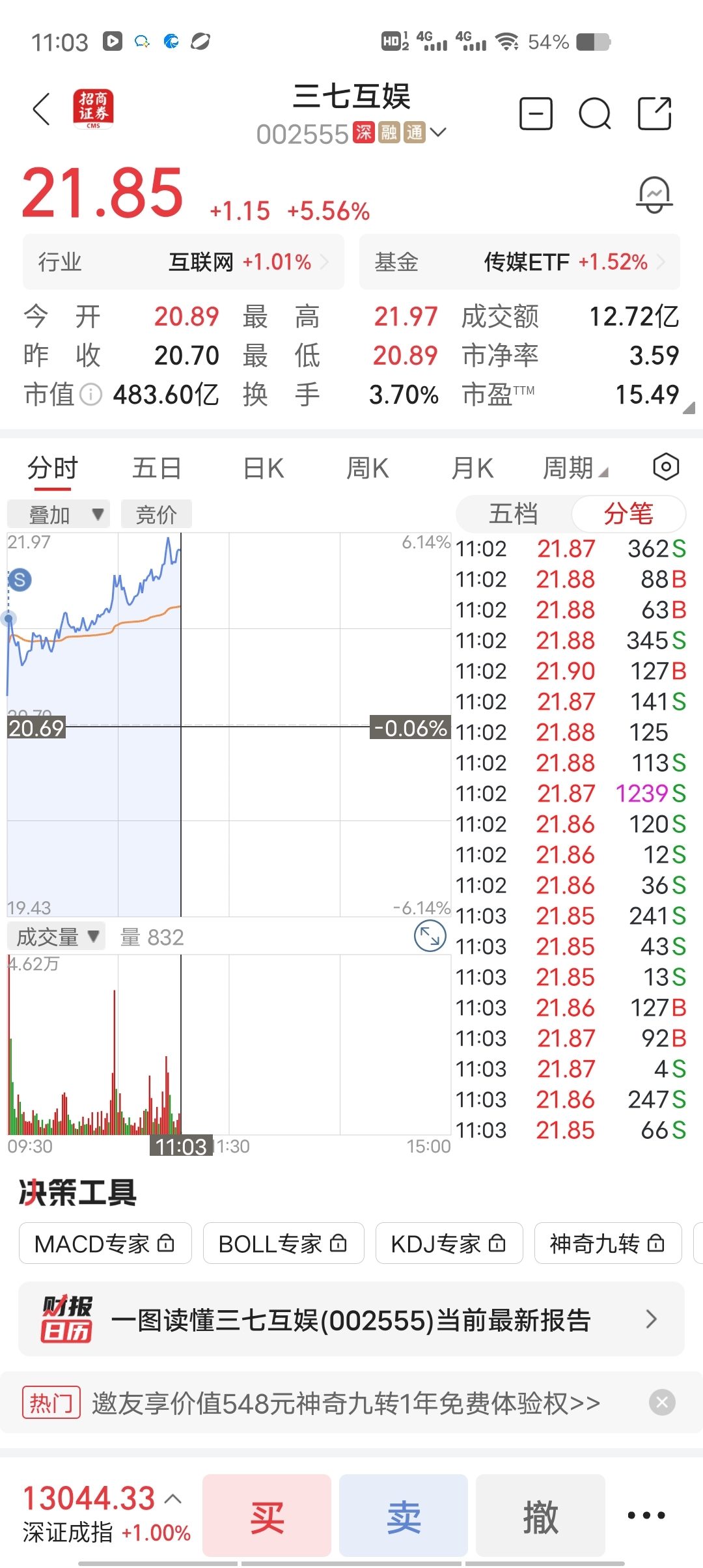 $三七互娱(SZ002555)$ 又卖飞了,有本事不下来,拉板,我打板!