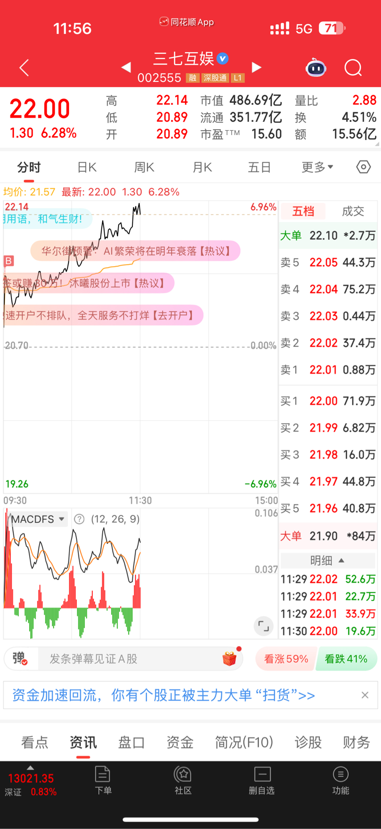 $三七互娱(SZ002555)$ 买啥啥涨哈哈