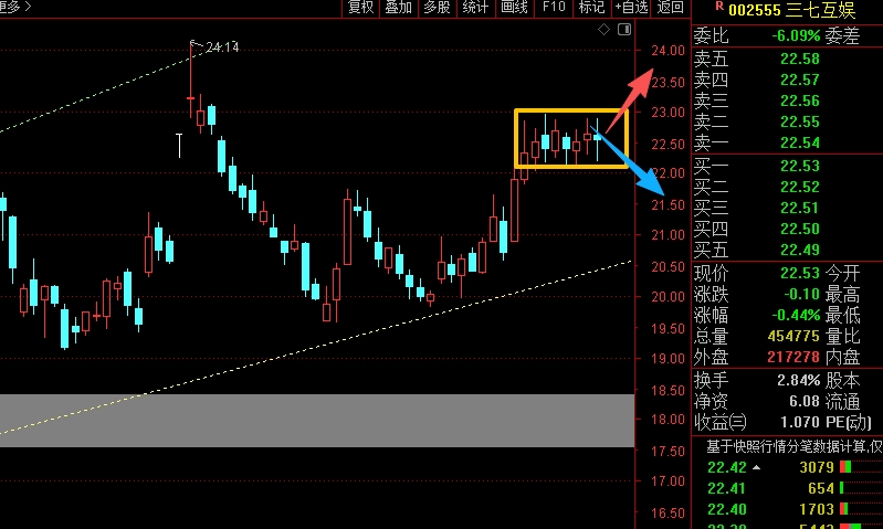 $三七互娱(SZ002555)$ 近期反弹趋势走得不错,最近几天主要是高位的一个小箱体震荡,接下来重点就看箱体震荡完成后的方向选择,能突破站稳就漂亮了,但如果突破未遂,就要注意跌破箱体后的破位风险,需要控制仓位应对。#炒股日记# #收盘点评#