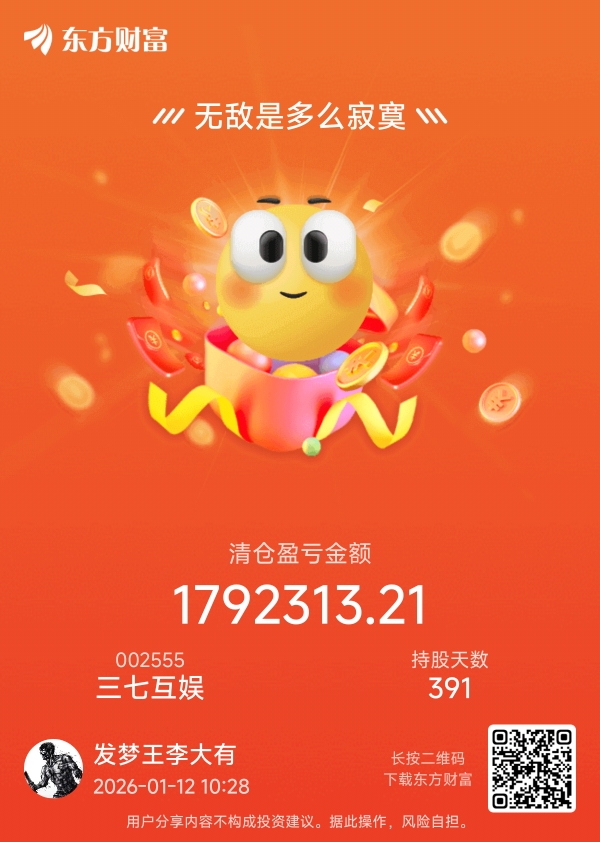 $三七互娱(SZ002555)$ 老登撤退了,恭喜在座各位发大财