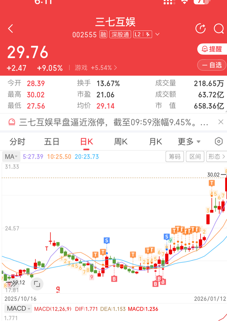 $三七互娱(SZ002555)$ 作为一个T狗,加速的时候硬是管住手,只踢飞了5手,大部队一百多手没动,后怕啊