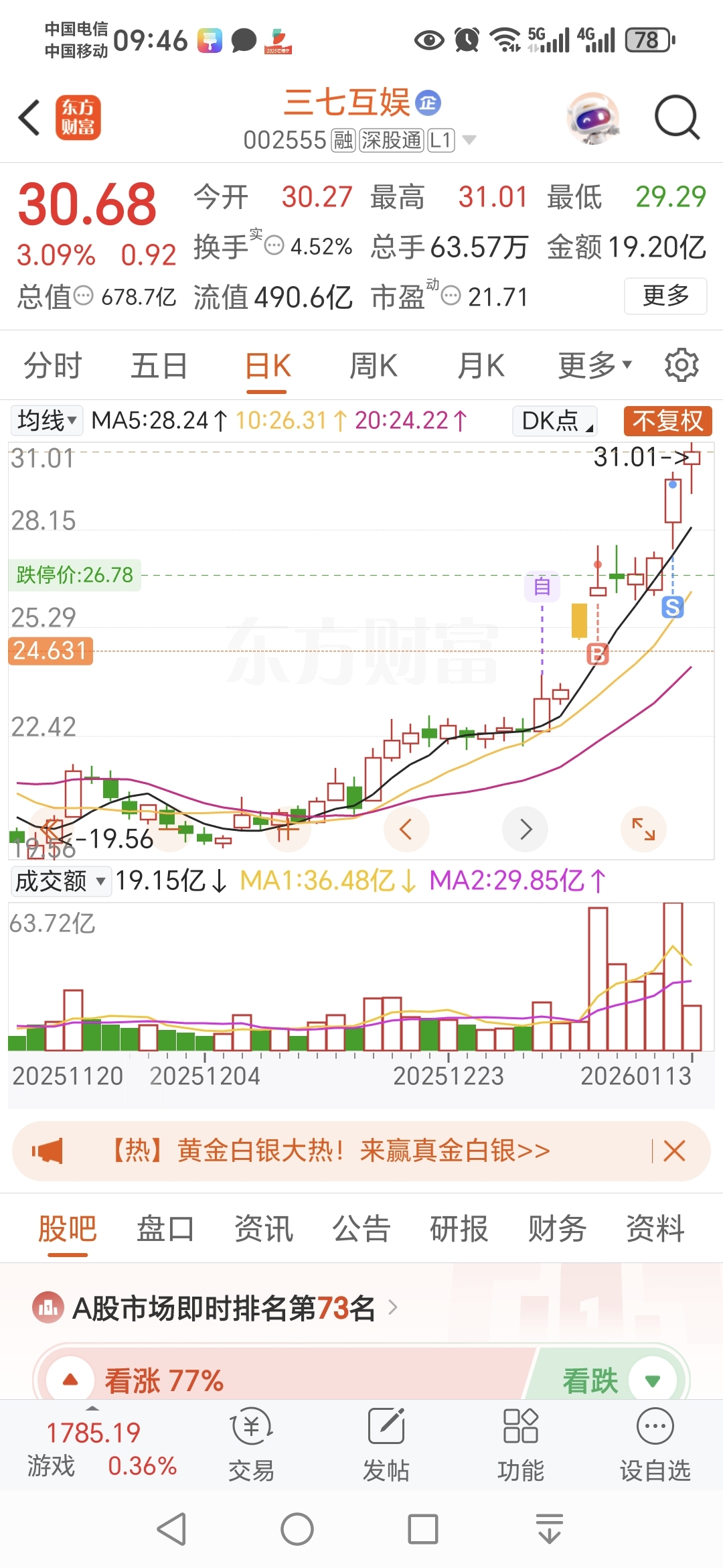 $三七互娱(SZ002555)$ 昨天你一直是烂板,就把你尾盘卖了