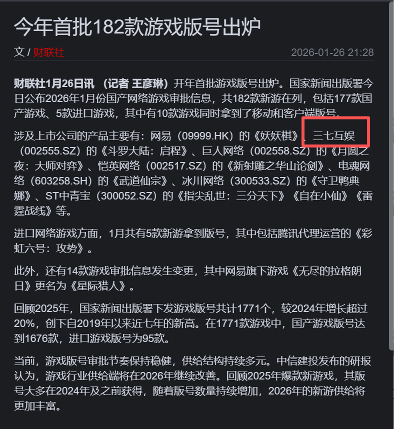 $三七互娱(SZ002555)$ 同时拿到移动和客户端版号