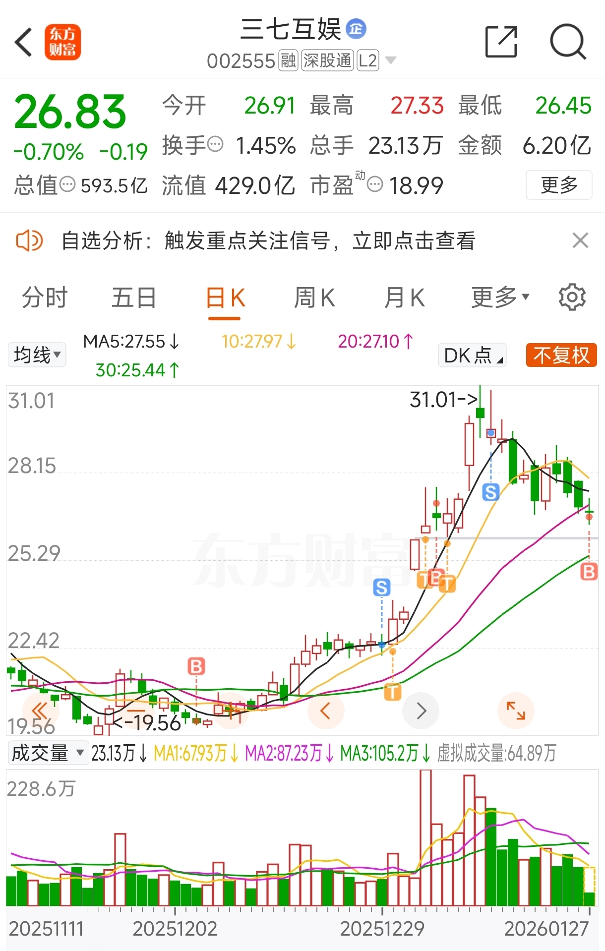 $三七互娱(SZ002555)$ 鼠哥我今天回三七了,回调结束。还是保持35元-40元预期不变。