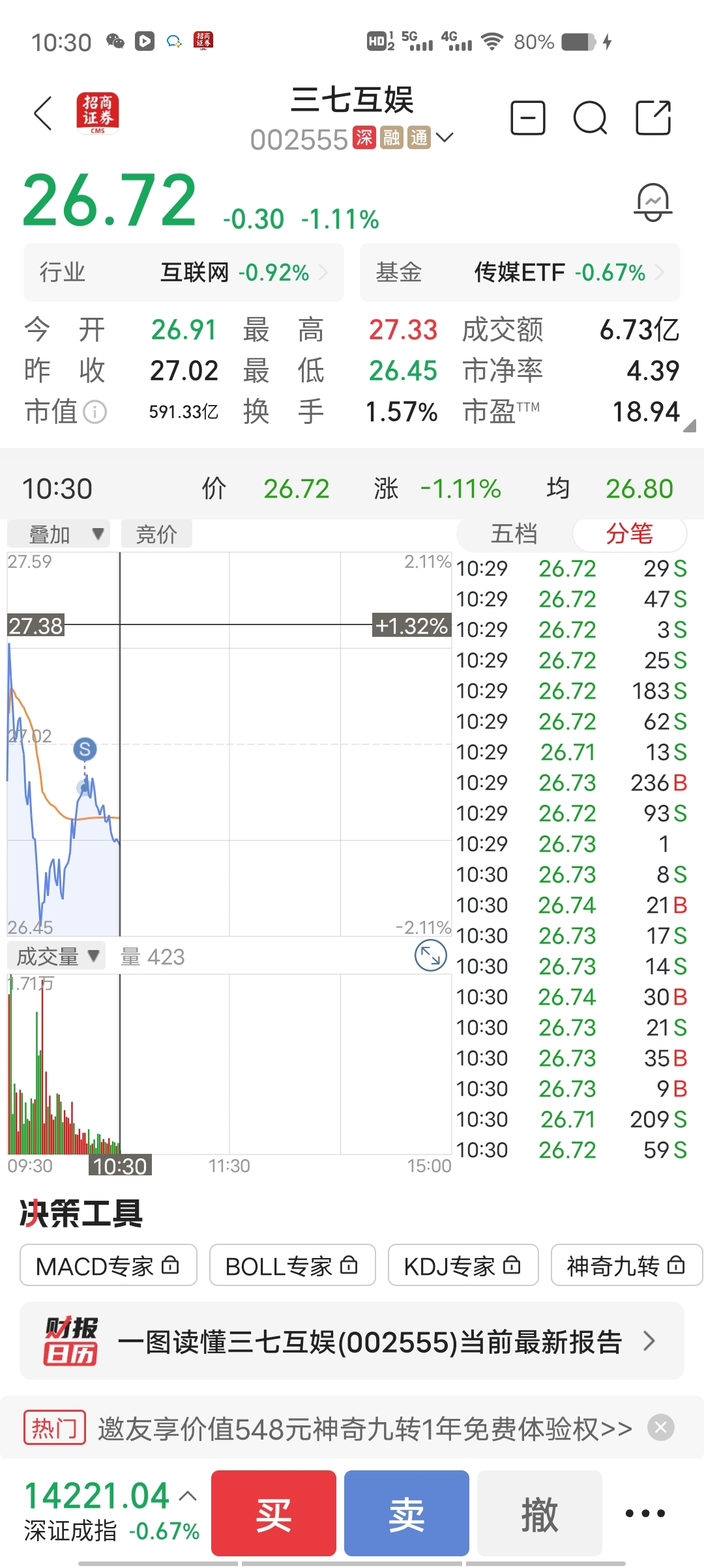 $三七互娱(SZ002555)$ 割肉了,座等26元买回!