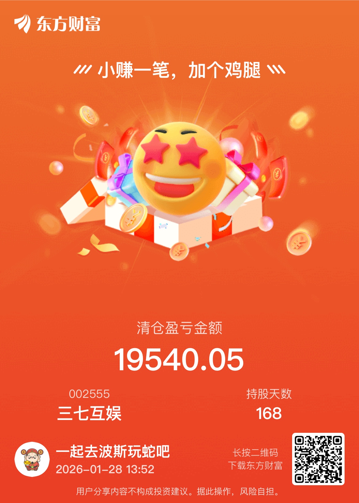 $三七互娱(SZ002555)$ 昨天触发止盈出去了,我倒要看看究竟是什么原因让我回撤了1万的收益。