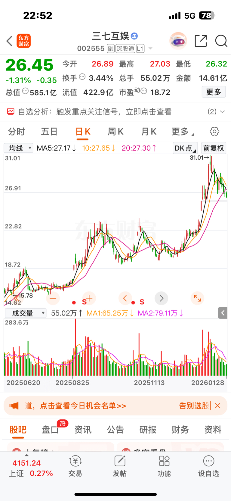 $三七互娱(SZ002555)$ 强庄股的三七互娱,再强也不可能一直涨,涨起来肯定要派发,搞搞筹码换现金,砸下来到23.50元又买入抢反弹,反弹结束,继续砸。踏准节奏就能赚到。