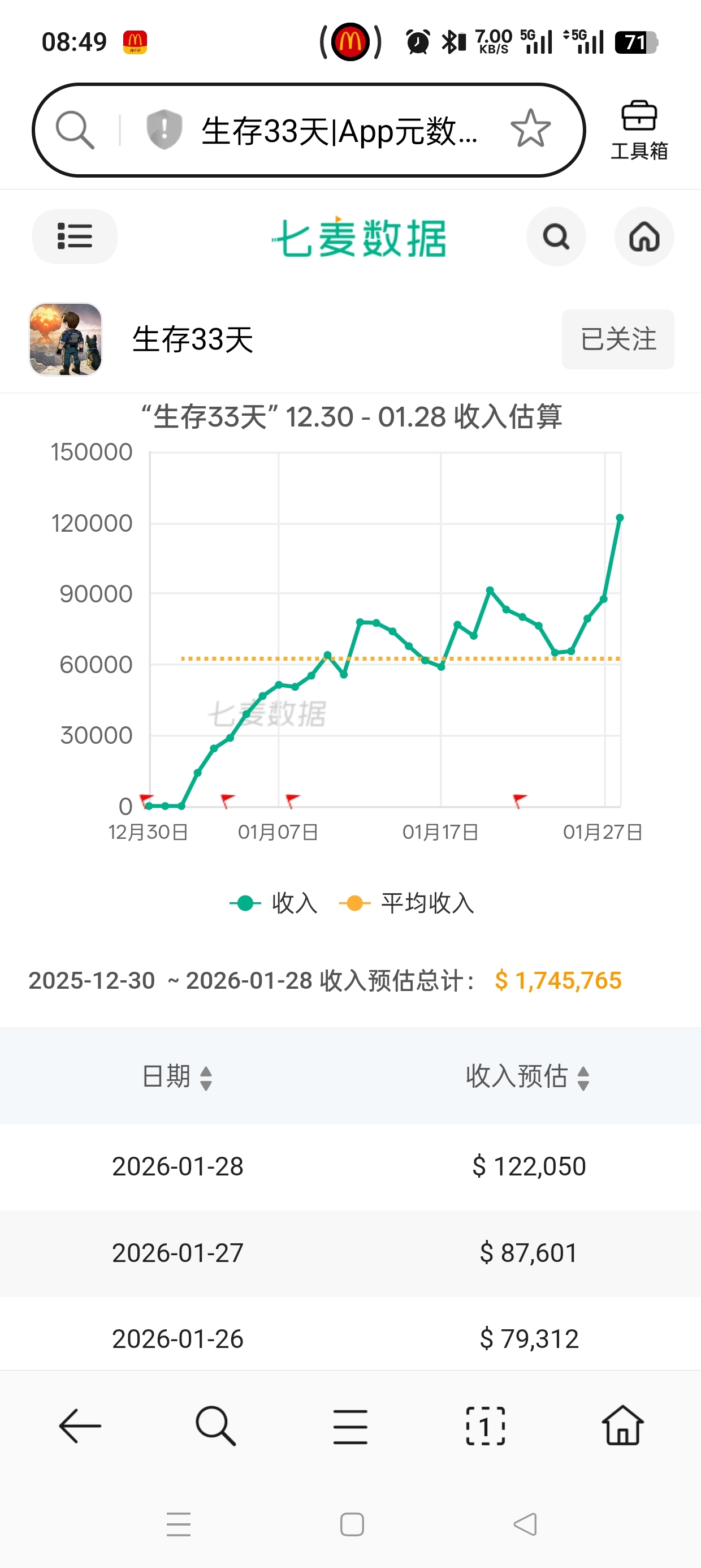 $三七互娱(SZ002555)$ 生存33天IOS端收入继续爬坡,排名继续上升