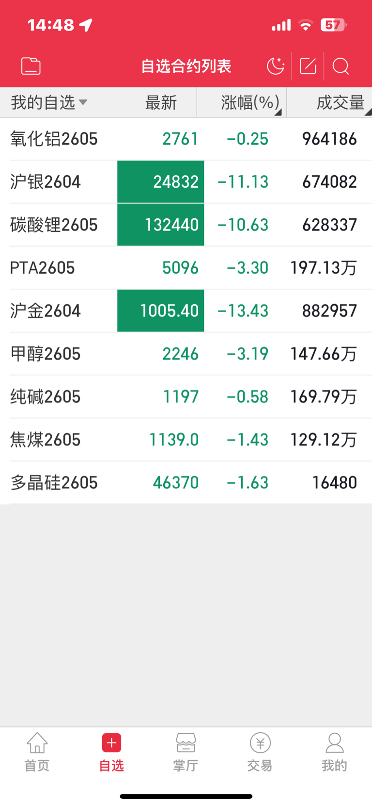 $三七互娱(SZ002555)$ 大盘下暴雨,期货市场下特大暴雨,发个帖留念一下,黄金、白银,全线跌停,穿底,这种10倍杠杆极端行情,敬畏!必须敬畏!