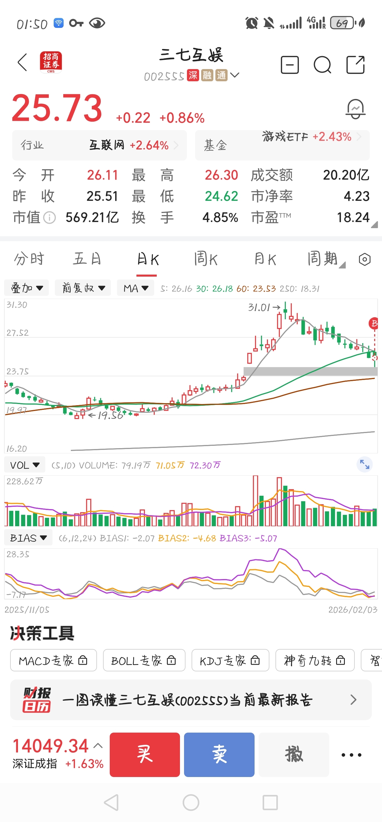 $三七互娱(SZ002555)$ 今天这个深蹲,资金还没出得来抄底,可惜了,不过现在看来应该是洗盘,25.51跟一点仓位看看,跌下来再慢慢买#炒股日记#