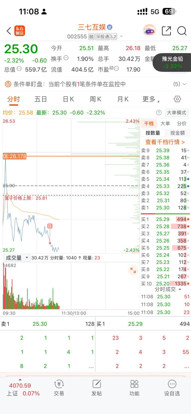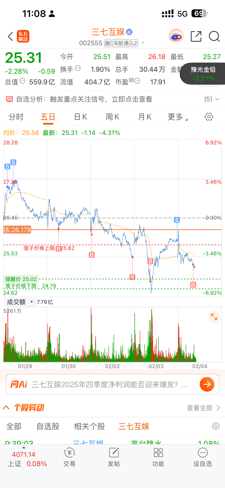$三七互娱(SZ002555)$ 做个隔日T还是加早了一点