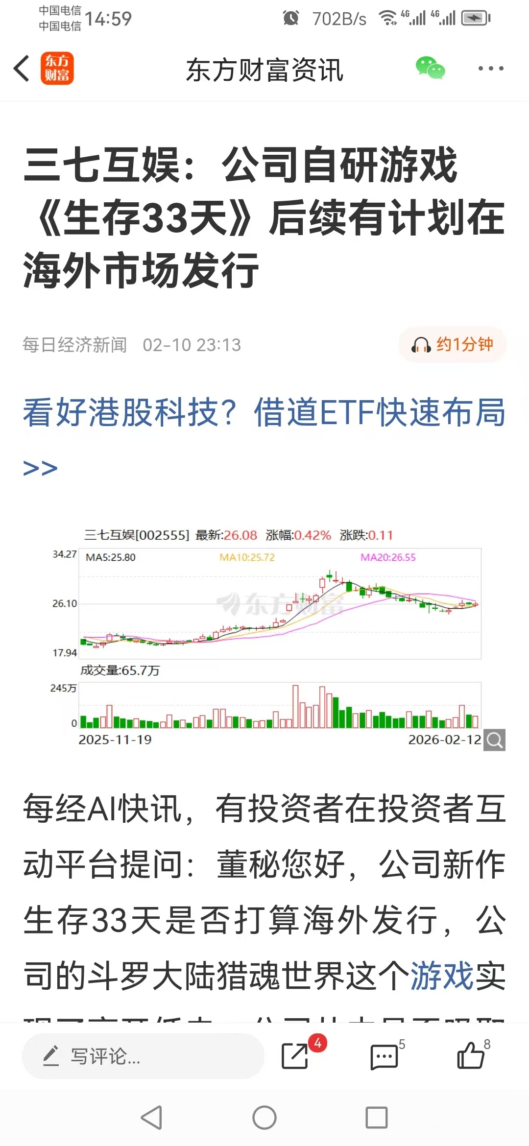 $三七互娱(SZ002555)$ 早盘继续加仓 仓位已经超过7成仓 准备迎接节后短期新高吧 哈哈哈