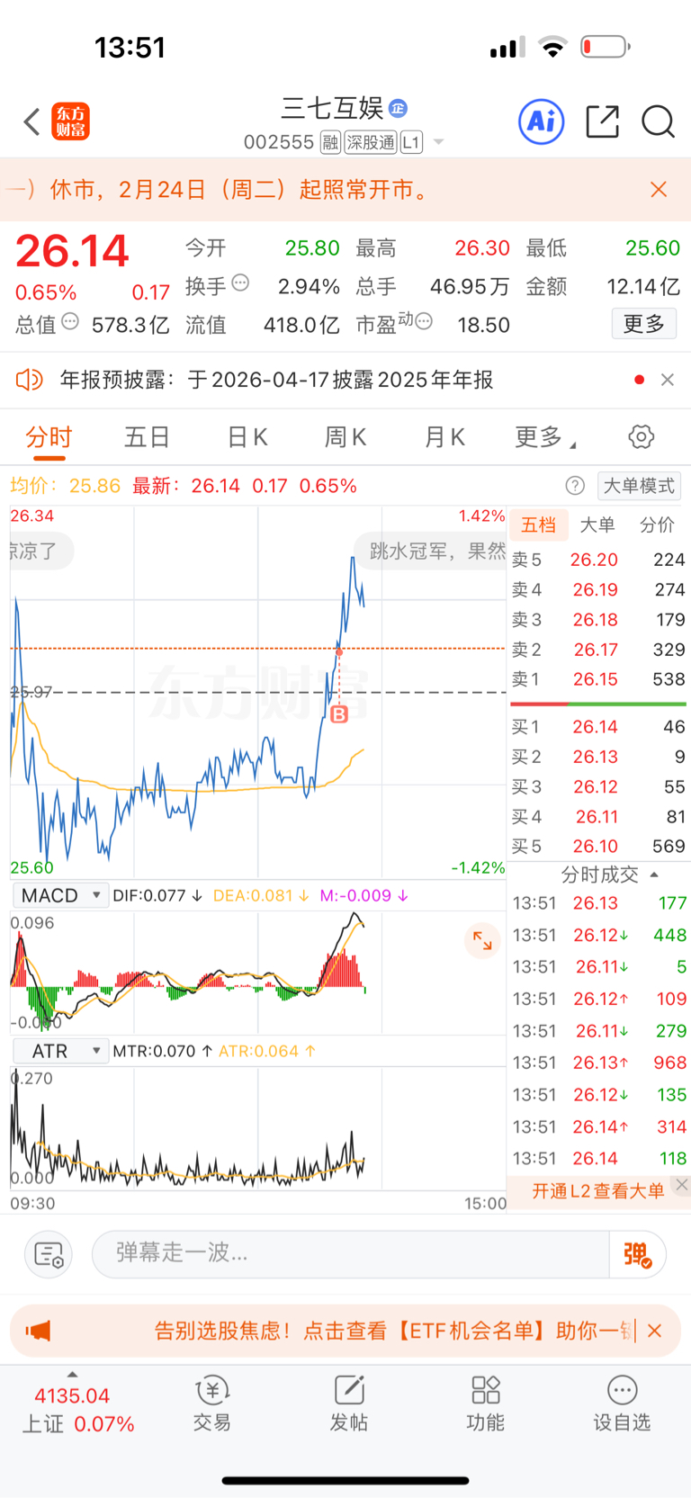 $三七互娱(SZ002555)$ 我是大学生,让我赚个红包