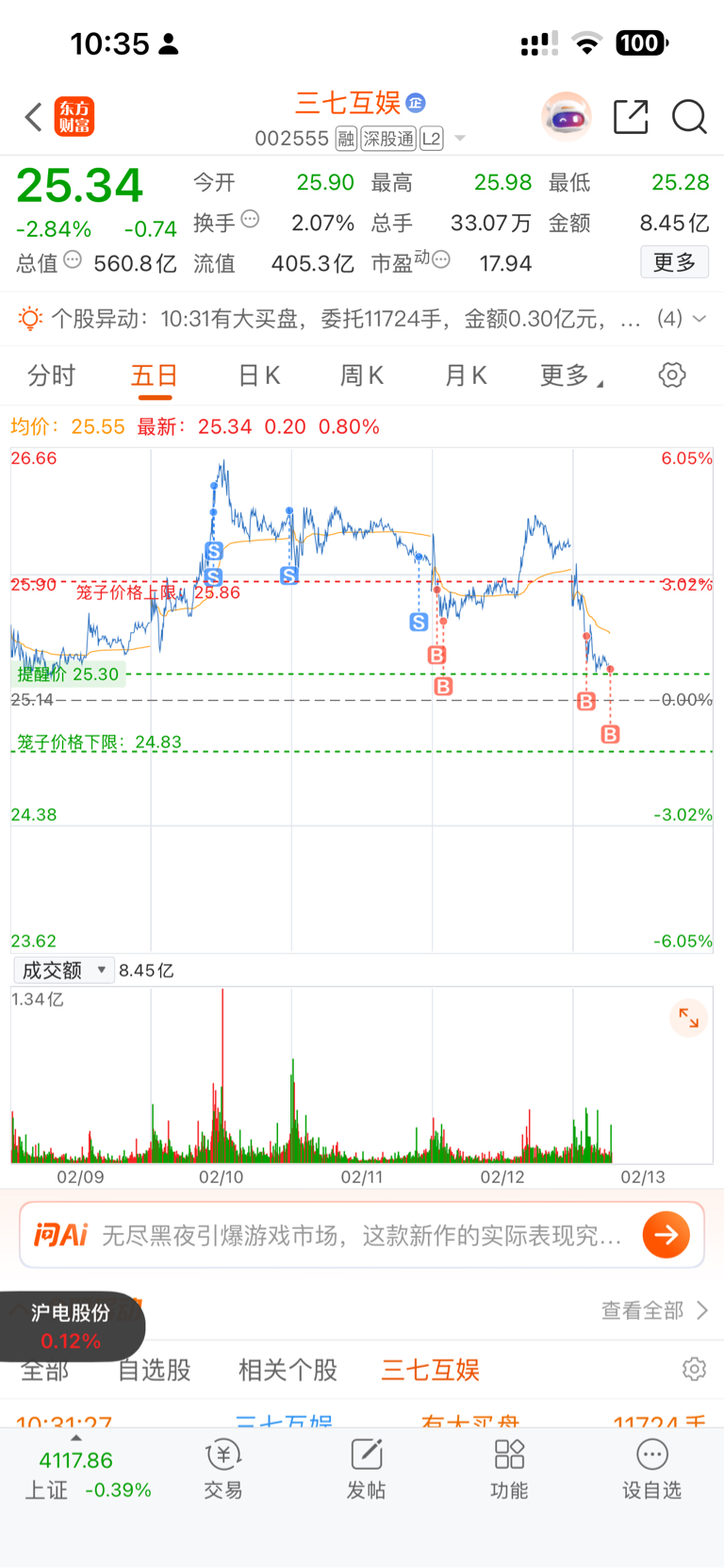 $三七互娱(SZ002555)$ 盈利不走又吃套了