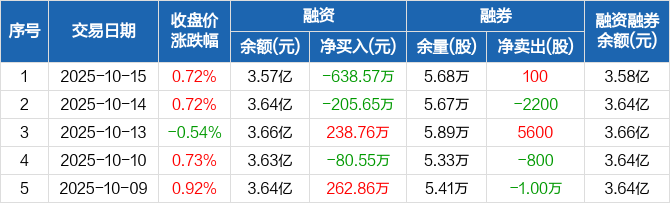 辉隆股份:融资净偿还638.57万元,融资余额3.57亿元(10-15)