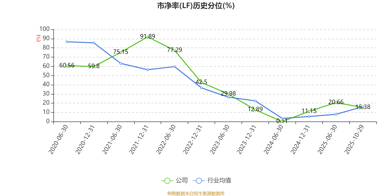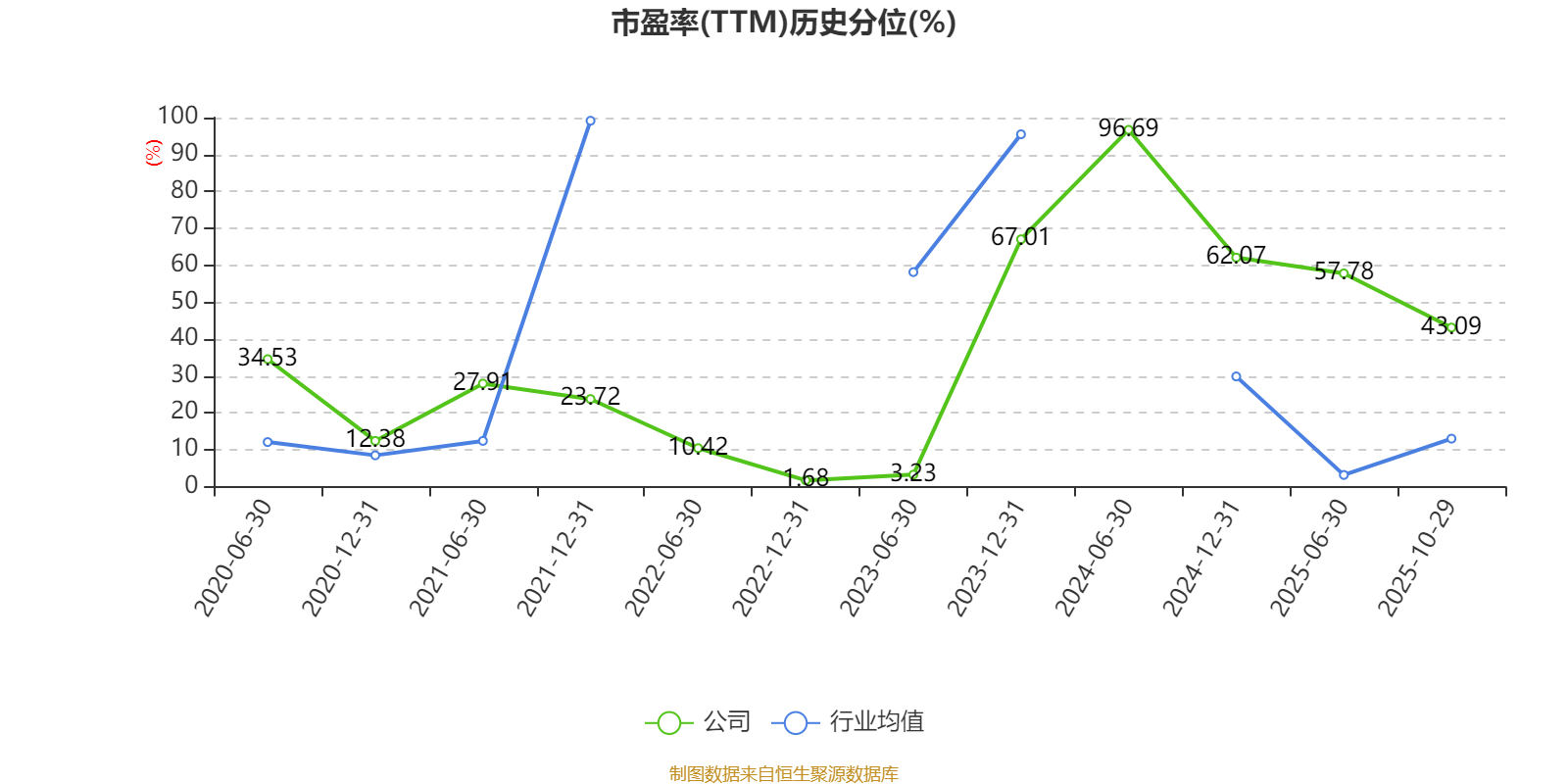 市盈率、市净率为负时,不显示当期分位数,会导致折线图中断。