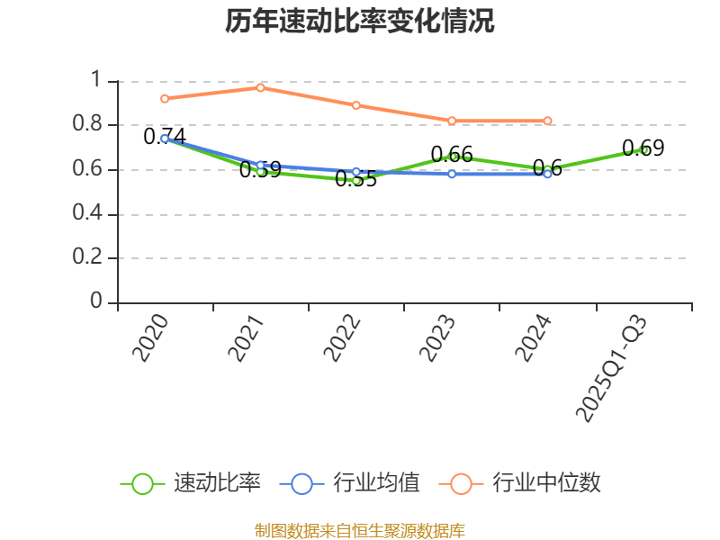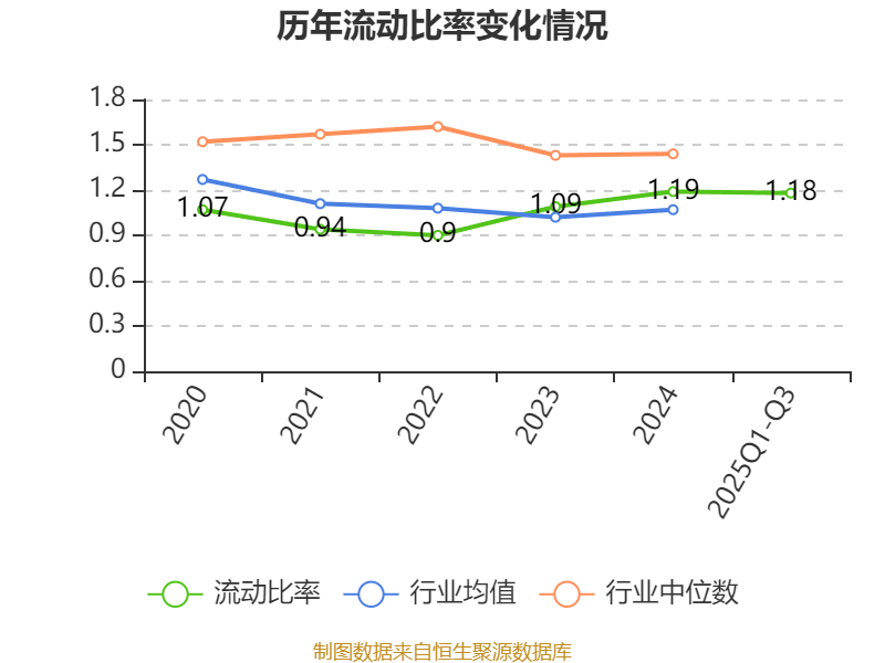 2025年前三季度,公司流动比率为1.18,速动比率为0.69。