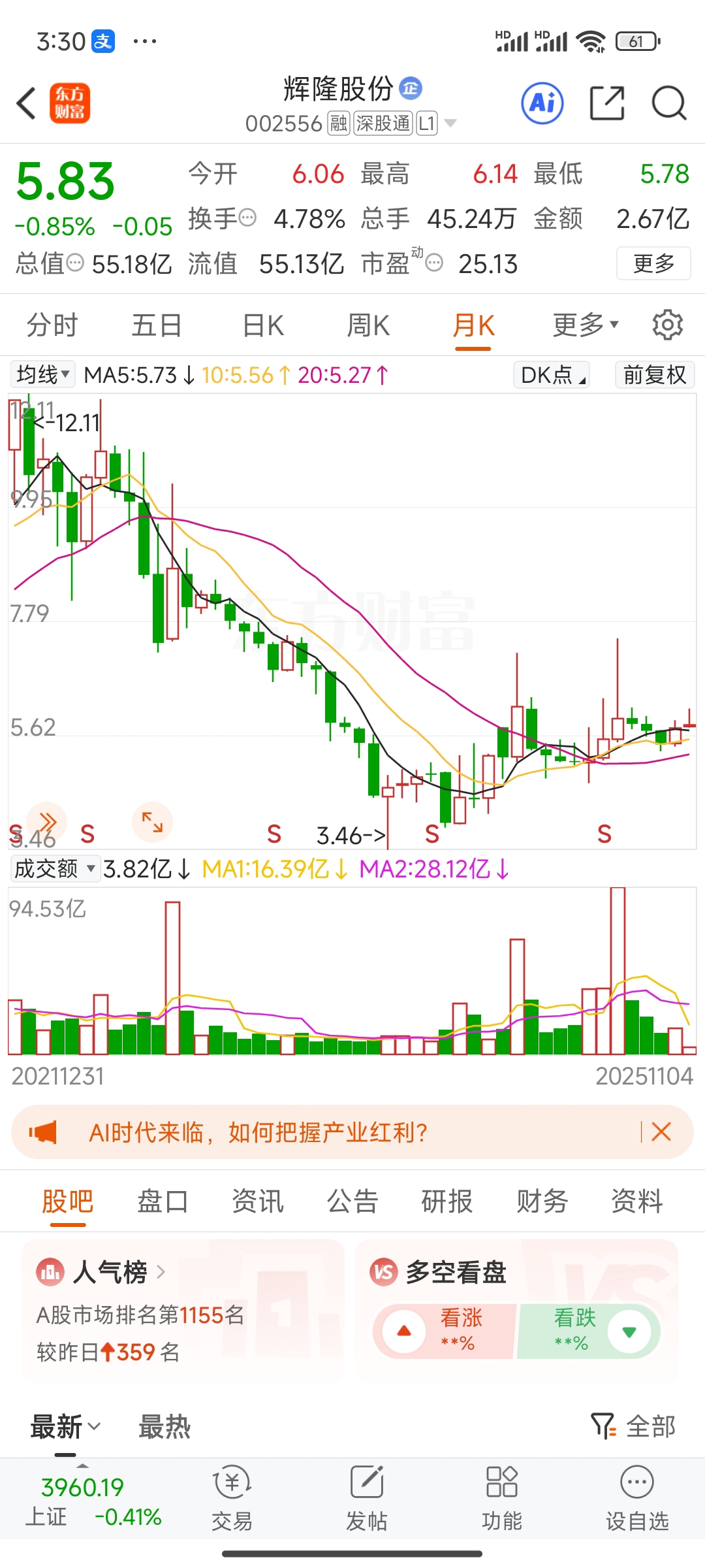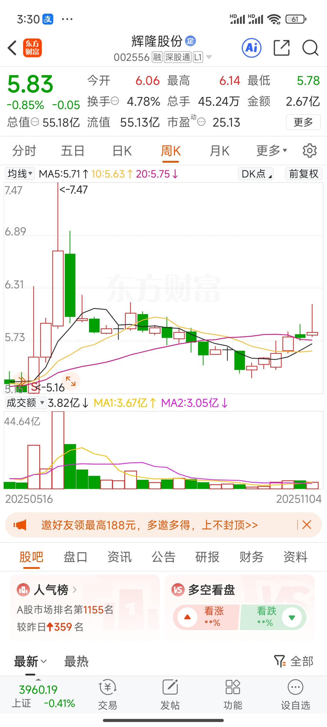$辉隆股份(SZ002556)$ 周线刚启动,月线还在3000点,自已琢磨琢磨。