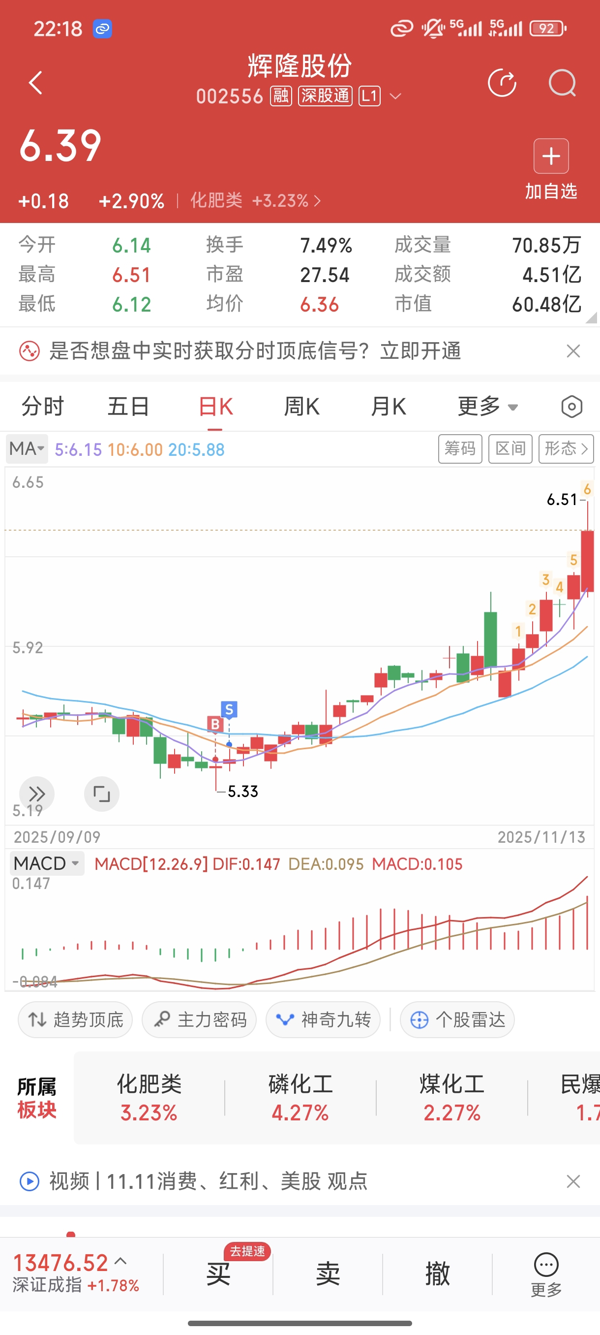 $辉隆股份(SZ002556)$ 怒赚3分钱的涨幅!