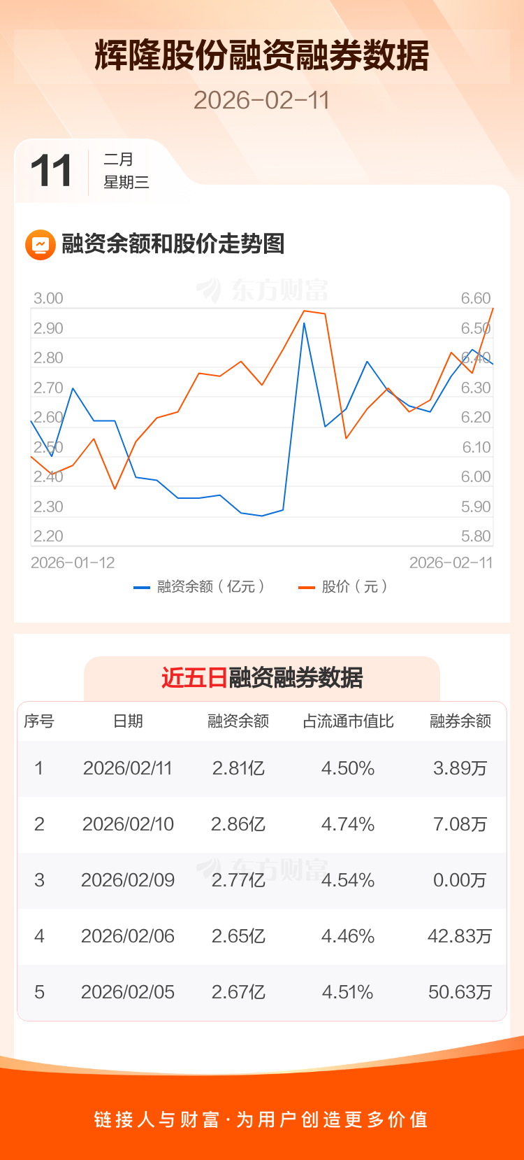 交易所最新数据显示,辉隆股份于2026年2月11日获融资买入3134.25万元,融资偿还3643.31万元,当日融资净偿还509.06万元。目前,该股融资余额2.81亿,占流通市值比例为4.50%。