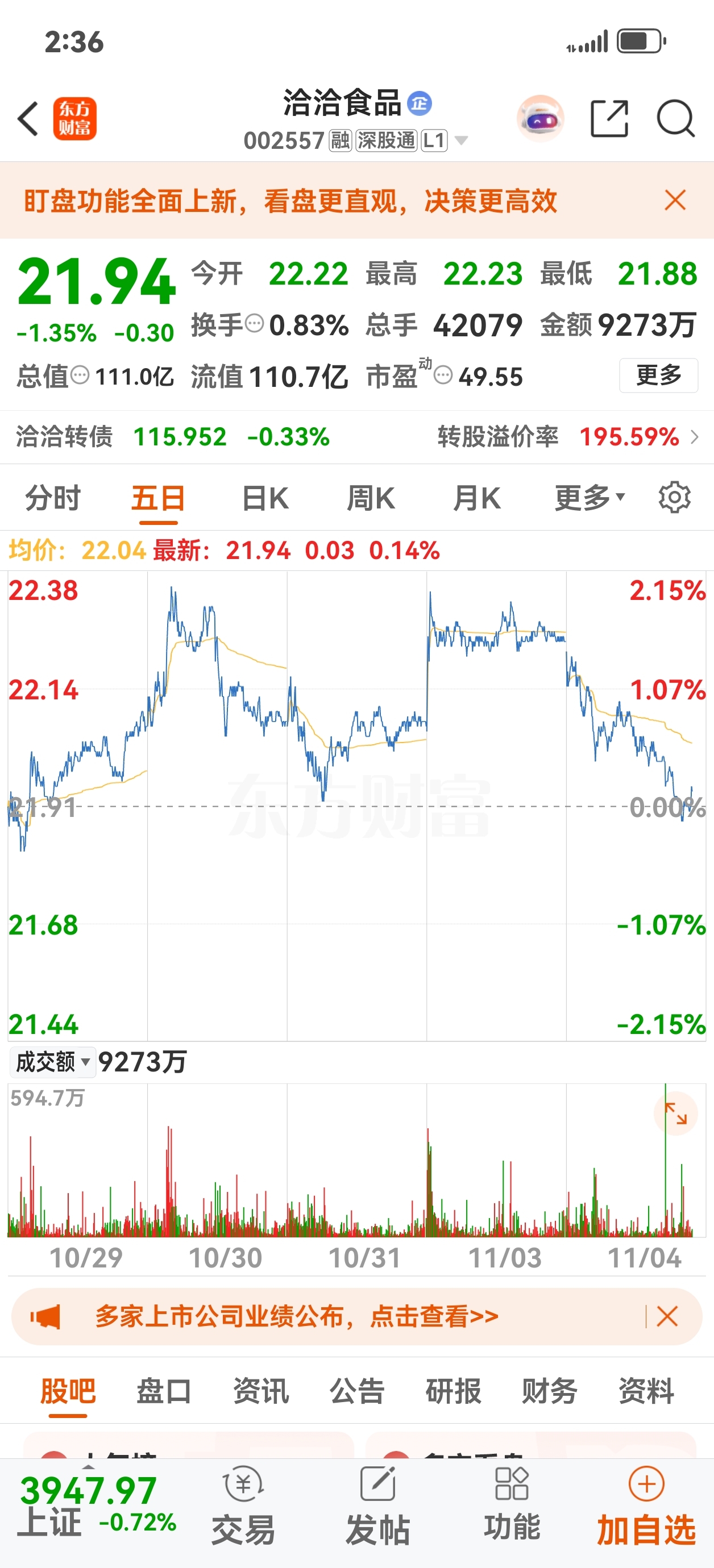 $洽洽食品(SZ002557)$ 双顶形成!先撤散户扎堆股,选择买一致魔芋去了!