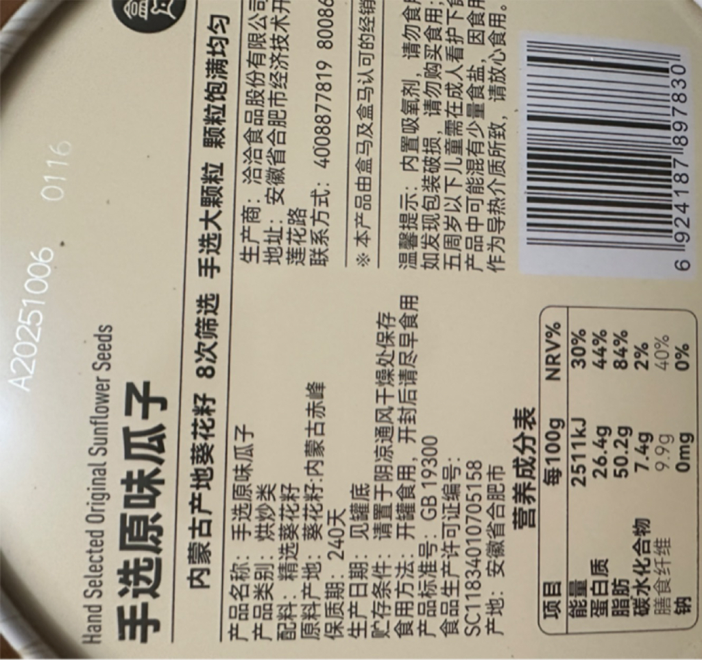 吃了十来罐盒马的瓜子,很好吃颗颗饱满无坏的,才发现是洽洽代工。