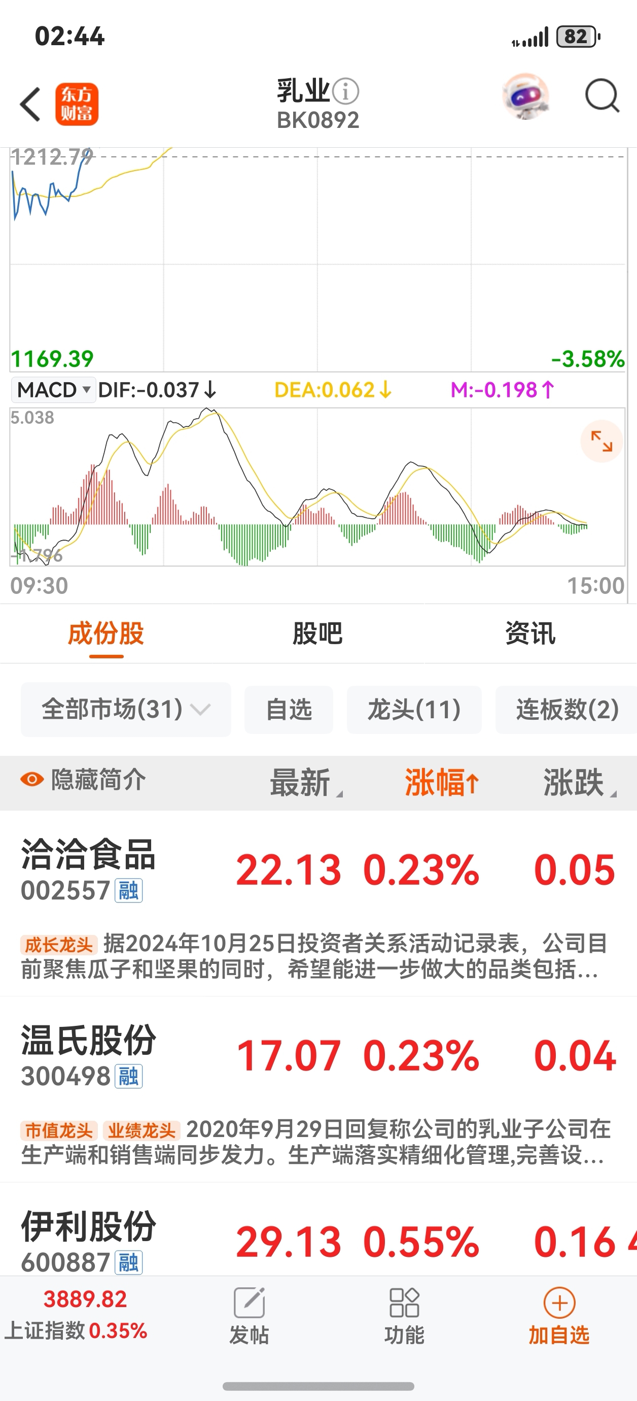 $洽洽食品(SZ002557)$ 倒数第一!被踢出来是有深刻原因的!你红了是因为整个板块没有一只绿的!