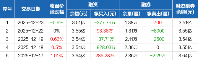 洽洽食品:融资净偿还377.76万元,融资余额3.51亿元(12-23)