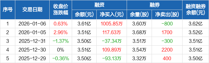 洽洽食品:融资净买入1005.85万元,融资余额3.61亿元(01-06)