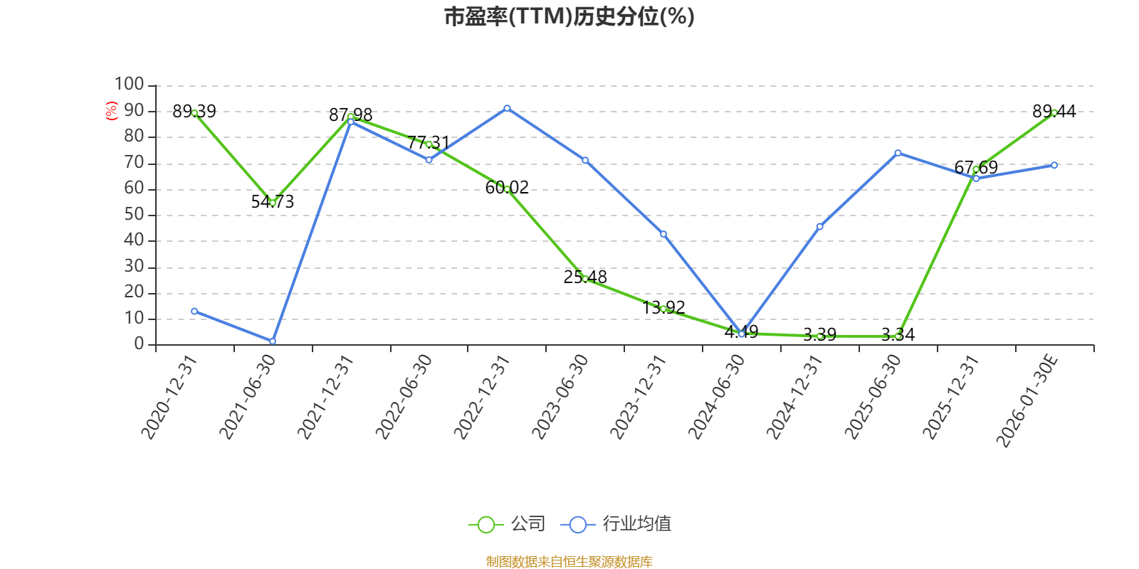 以本次披露业绩预告均值计算,公司近年市盈率(TTM)图如下所示: