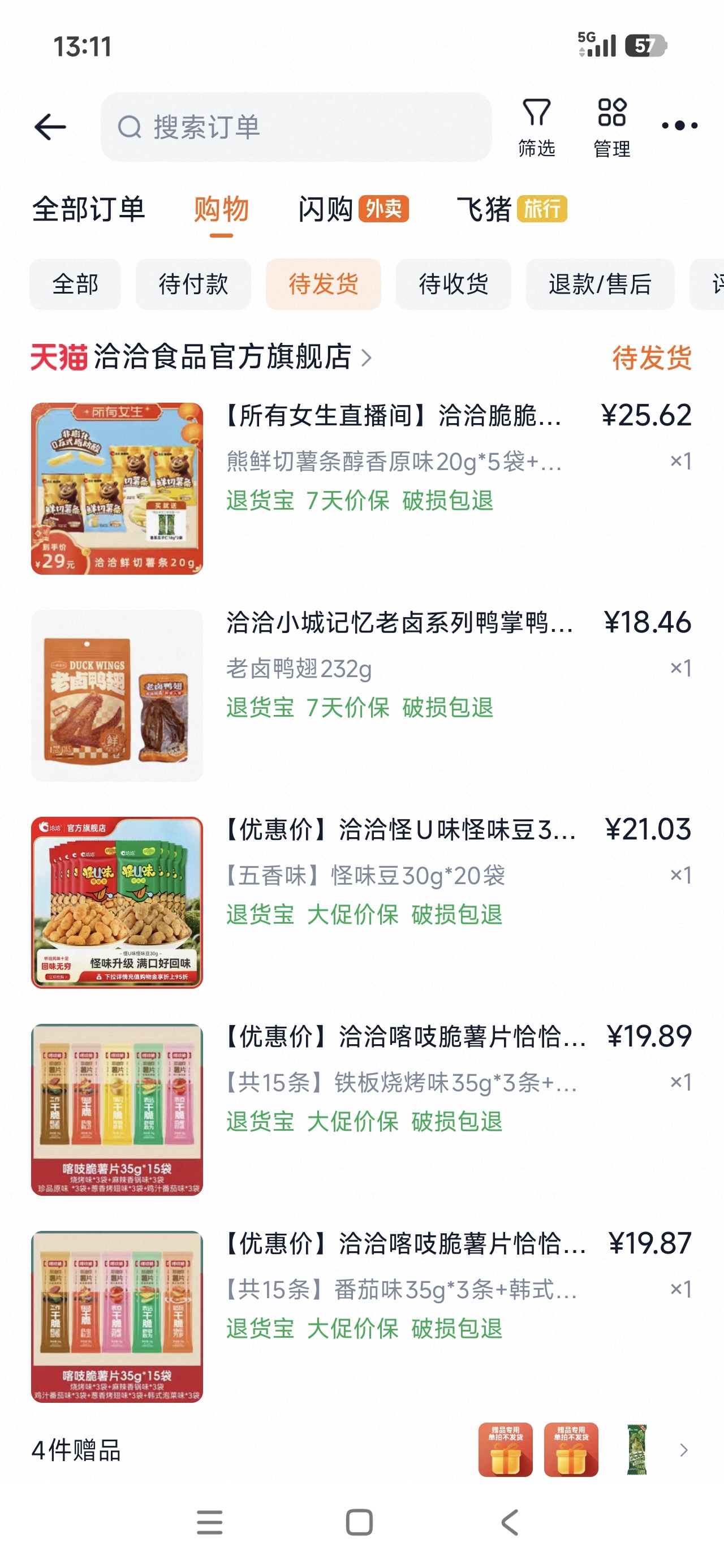 $洽洽食品(SZ002557)$ 生意这么好嘛,下单了一直不发货,股价你倒是涨一点啊