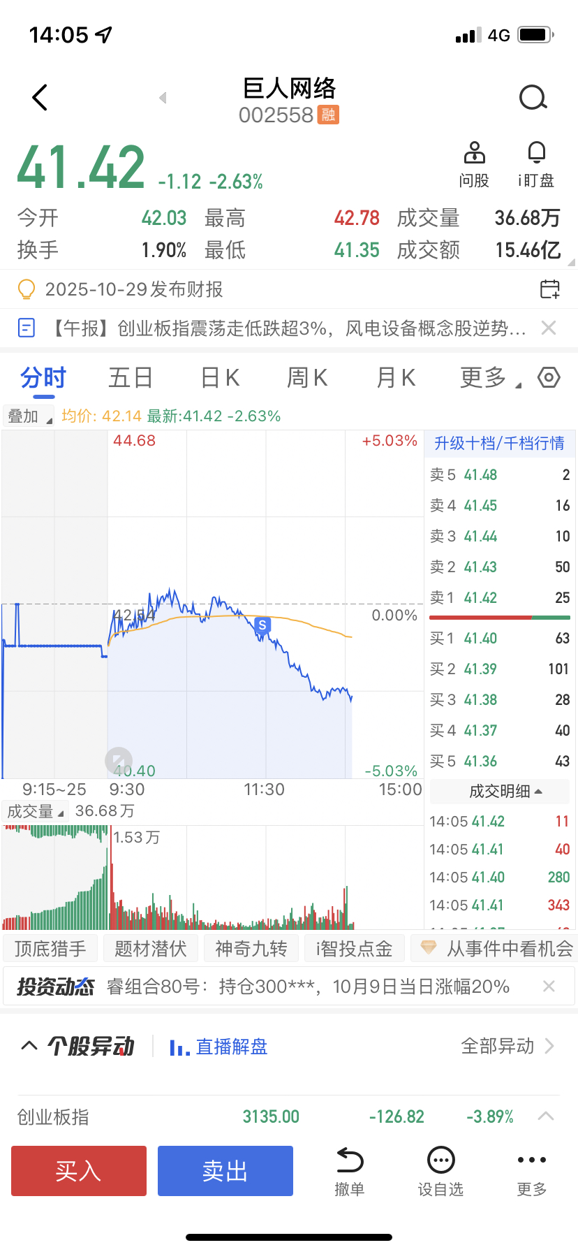 $巨人网络(SZ002558)$ 今天不修复那大概率调月线,摸34-35左右,先走了