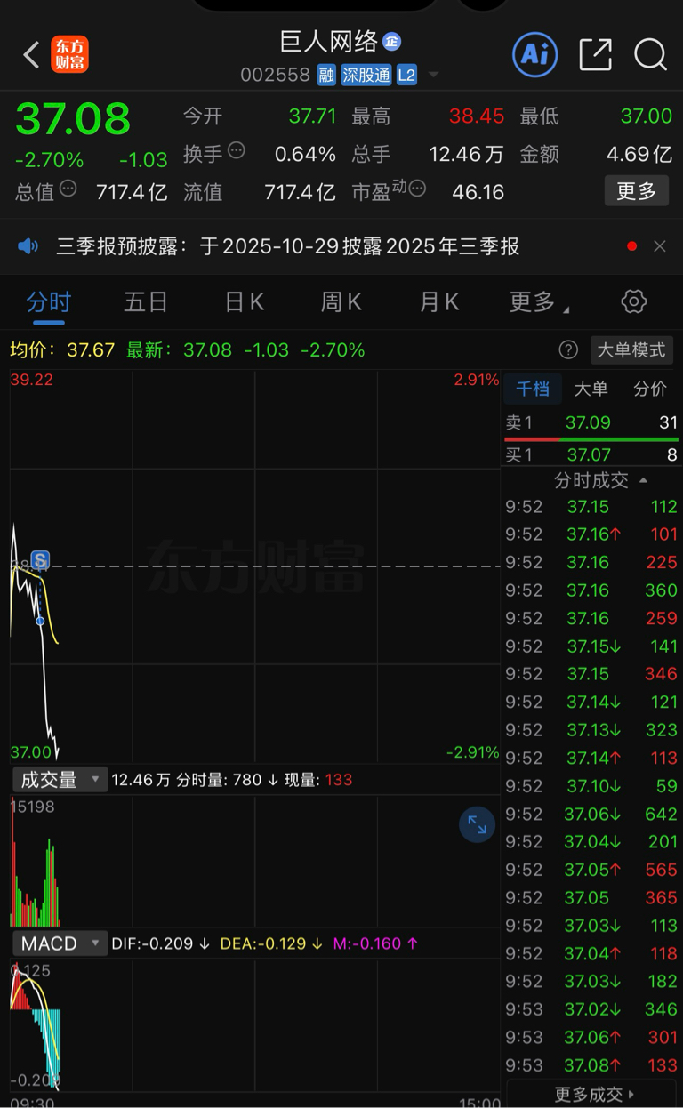 $巨人网络(SZ002558)$ 不好意思兄弟们,是我砸的