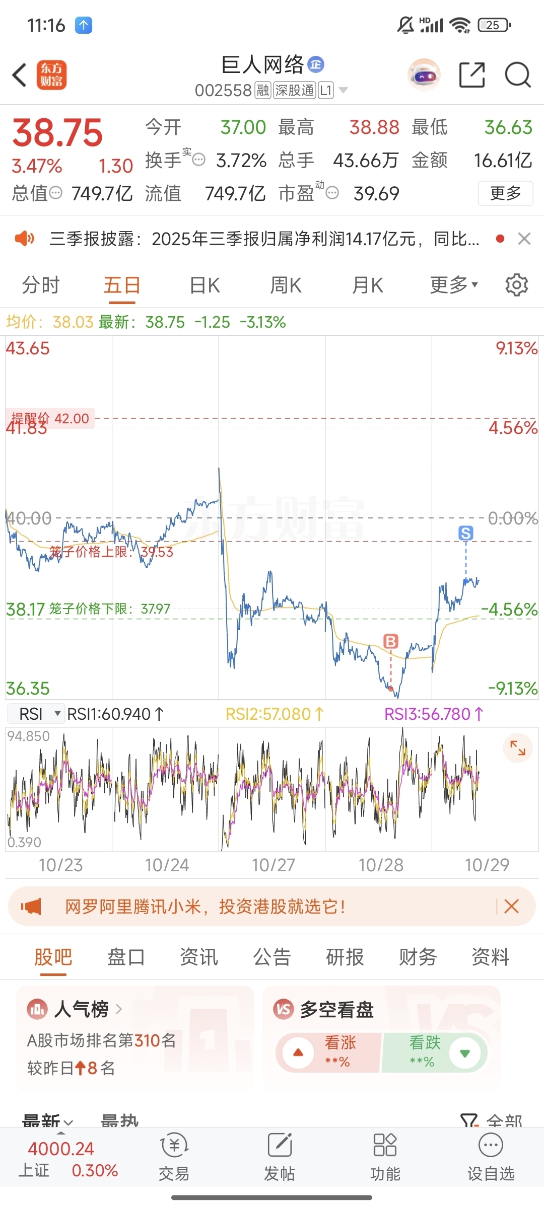 $巨人网络(SZ002558)$ 还好昨天跑了